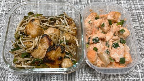 (写真左)鶏むね肉のレバニラ風もやし炒め (写真右)鶏むね肉の明太マヨソース 昨日の自炊。 (写真左)鶏むね肉のレバニラ風もやし炒め 材料:とり胸、ニラ、もやし もやしの消費期限が危うかったので救済。味濃くて中華感!美味しかった 簡単!やみつき…