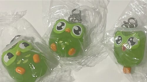 『duolingo めじるしアクセサリー』のガチャガチャをやってきました! https://gashapon.jp/products/detail.php?jan_code=4582769775666000 さっき近くのお店の入荷情報があって、お休憩中に台風で大雨の中ダッシュで引いてきました無事引けたけどもうほぼ…