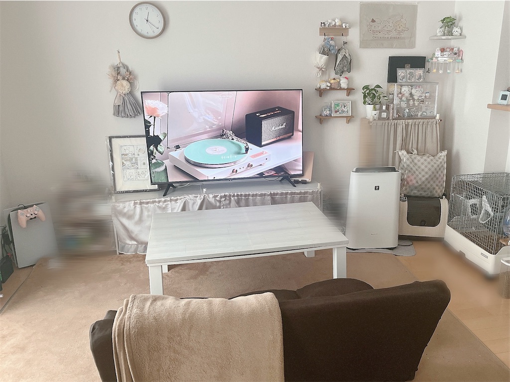 こうすると床も壁もなんならラグもおしゃれな感じにしたくなってくるな〜〜!……ということで、最近ははがせるリメイクシート、フロアシートを探している毎日です。床が変わるだけでこんな変わるの夢がある、、、